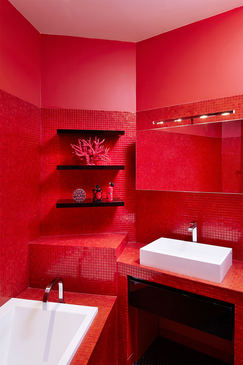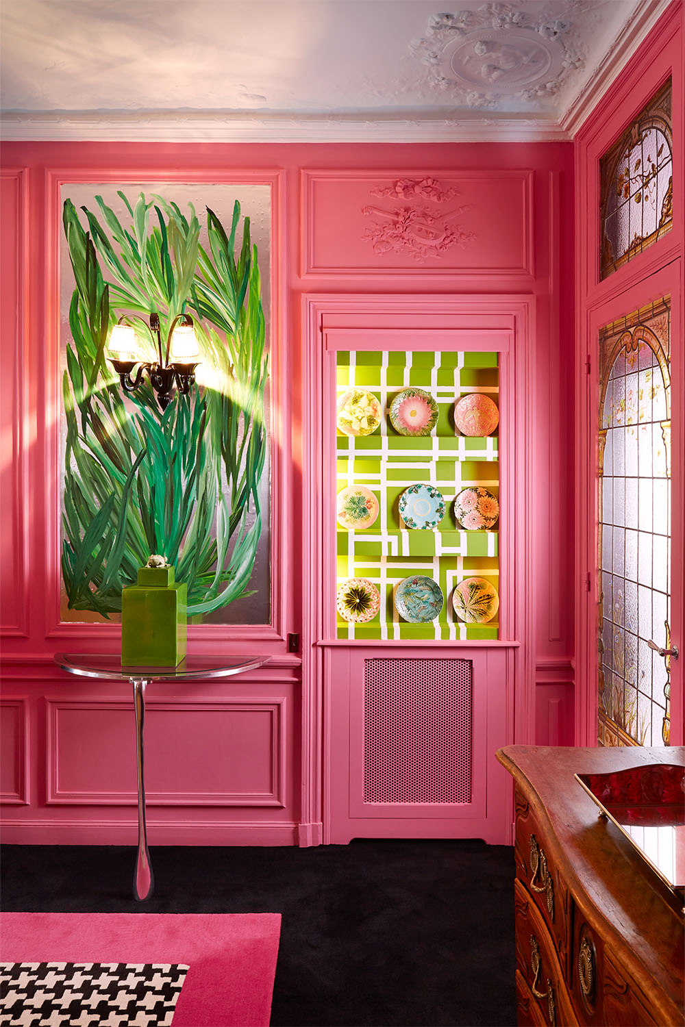 Salta a la vista que la propietaria de esta vivienda es tan amante del color como de una estética impactante. Arquitecta de interiores y diseñadora desde hace más de 20 años, a Géraldine Prieur, quien dirige desde 2012 su propia agencia de diseño, “Rouge Absolu”, en París, se la conoce por su estilo poco convencional. Es una maestra en aplicar su método inconformista en todo lo que hace, incluso en su propia casa, un departamento de principios del siglo XIX en el muy elegante Barrio XVI de la capital francesa, donde vive junto a su familia.