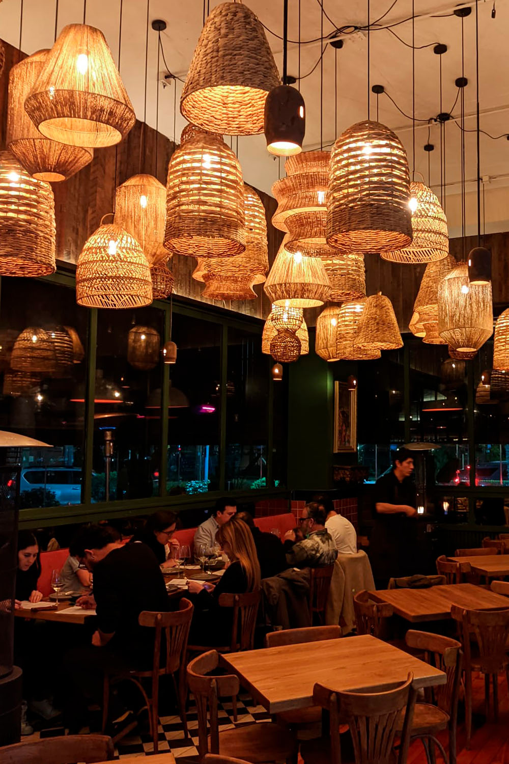 La acompaña la selección de vinos prácticamente sin intervención de la sommelier Rocío Alvarado, y una carta con harta nostalgia pensada para compartir a cargo de Constanza Roa. Se lucen platos como Ají del valle ($ 7.590), ají verde, relleno con pastelera de choclo, cebolla encurtida y crocante de aceitunas negras, y ¡Qué Locos! ($13.990), locos de Coquimbo marinados en Betarraga, crema de puerros, salsa verde de cebolla perla, ají, y aceite de zanahoria. De postre, Cuchuflí maní barquillo ($6.990), un mousse de chocolate, tierra de maní, calugas de manjar, galleta de barquillo y helado de manjar, que grita playa.