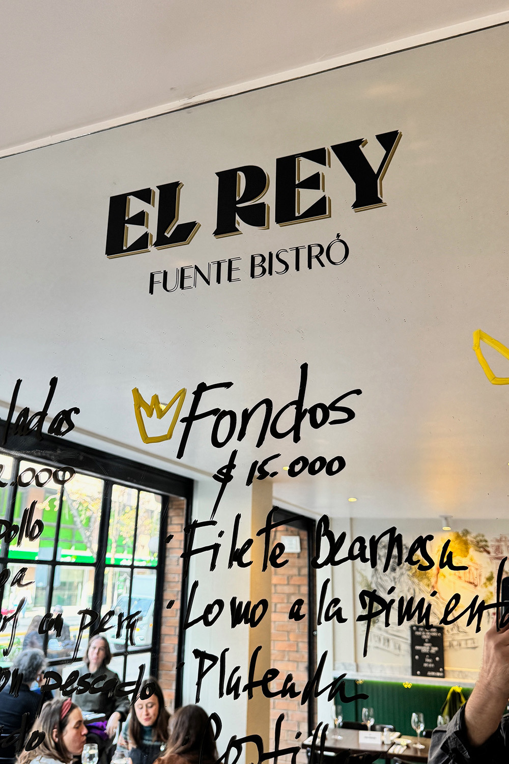 El Chef Diego García-Huidobro está a cargo de esta cocina, abierta, donde brilla la Pichanga del Rey ($5.000), con quesos y encurtidos; el Consomé de ave ($ 7.000), o las imperdibles Papas rellenas ($ 7.000) con queso mantecoso, las que están permitidas untar en azúcar flor. Además cuentan con principales, como Salmón con mantequilla y alcaparras, Plateada en su jugo, o Filete con salsa bearnesa, que se pueden acompañas de las imperdibles papas fritas ($ 5.000), un Milhojas de papa camote ($ 5.000) o Ensalada surtida ($ 5.000).