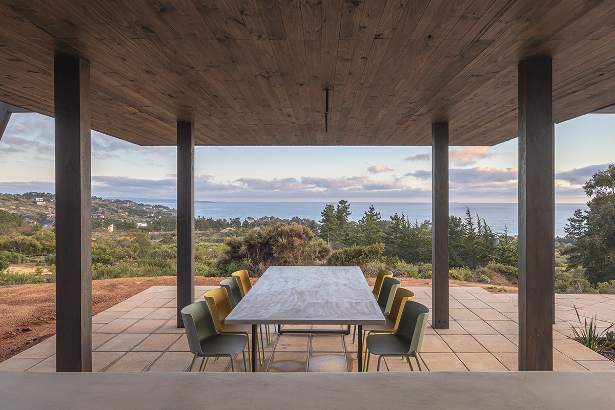 Desde el comienzo, el cliente pidió evitar la idea de una “casa convencional”. Buscaba una forma de relacionarse en 360 grados con el paisaje, capturar distintas vistas del territorio y adaptarse a un sitio marcado por el viento. El resultado es una casa que se abre hacia todas las direcciones, que se apoya en lo alto de la colina sin imponerse y que permite experimentar la fuerza y la calma de Tunquén en cada rincón.