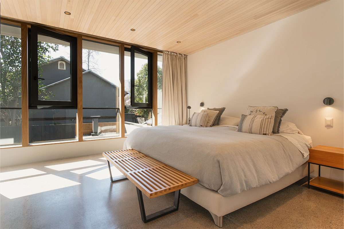 Parte del objetivo de esta remodelación fue hacerla manteniendo el carácter original de la casa, con sus techos planos, amplios aleros y proporciones horizontales, características propias de la arquitectura moderna del conjunto.