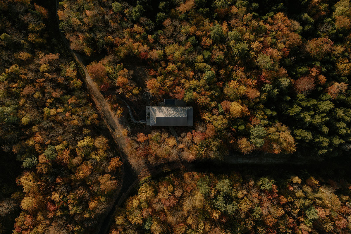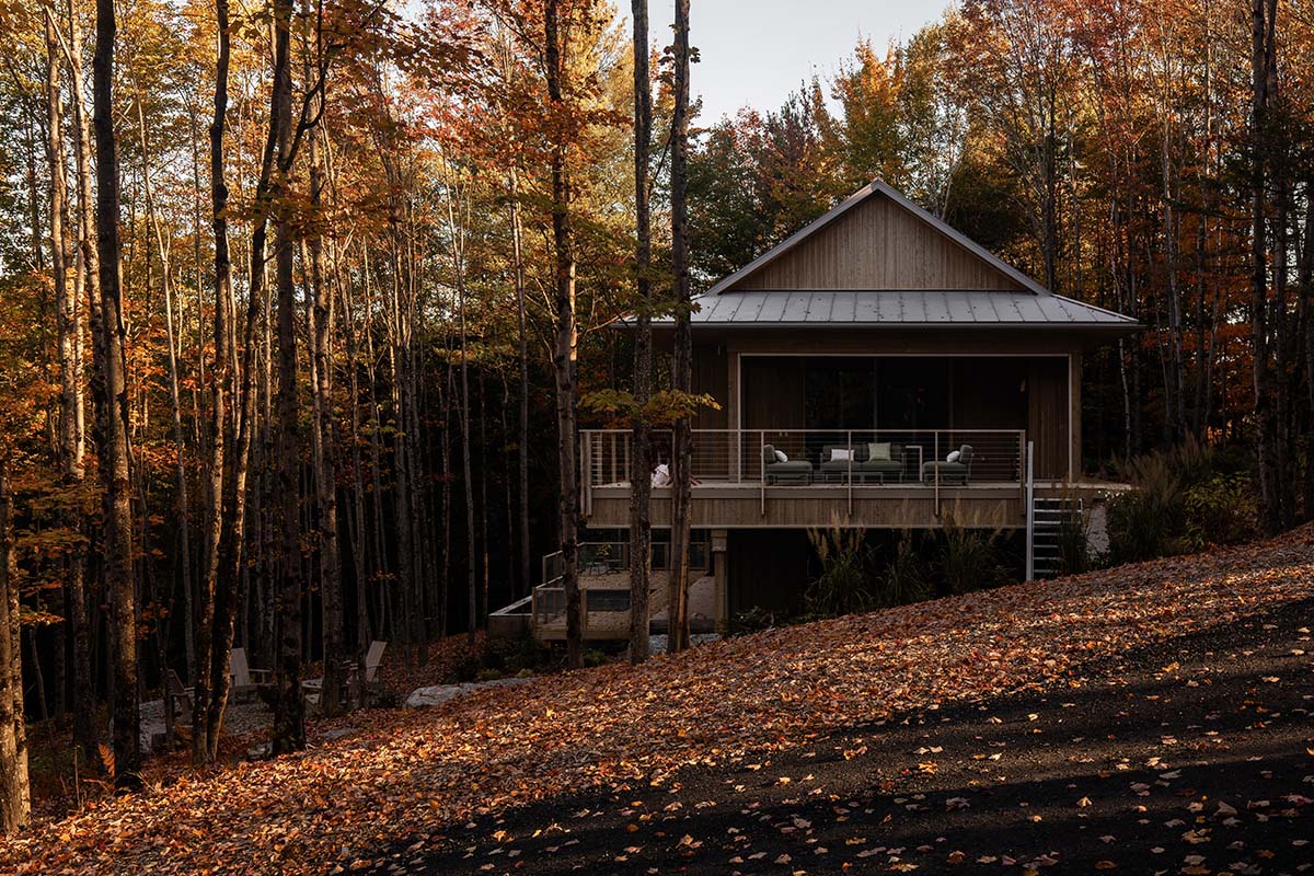 En North Hatley, en medio de un bosque de arces y con una pendiente que cae suavemente hacia un valle, esta casa parte leyendo el terreno tal como es. No hay intención de nivelar ni de corregir: la forma aparece a partir de esa condición.