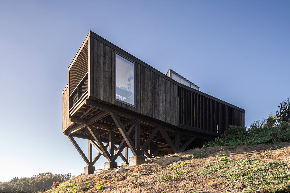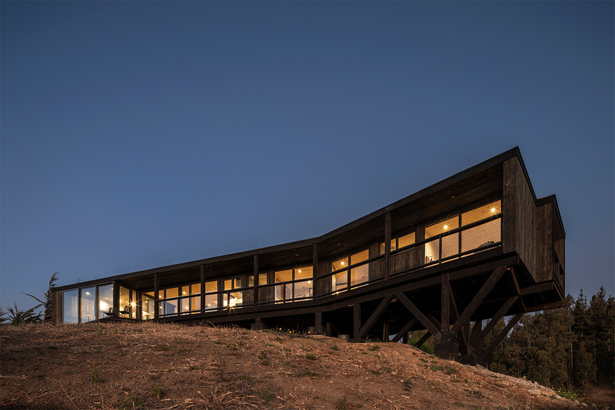 En la costa central de Chile, en Matanzas, comuna de Navidad, una pendiente pronunciada y la exposición constante al viento definieron desde el inicio el diseño de esta vivienda. El terreno, abierto hacia el horizonte y orientado al norponiente, ofrecía vistas lejanas al mar y un asoleamiento generoso por las tardes, pero también exigía resguardo frente al clima costero, una requisito ya clásico para las casas que se construyen en la zona.