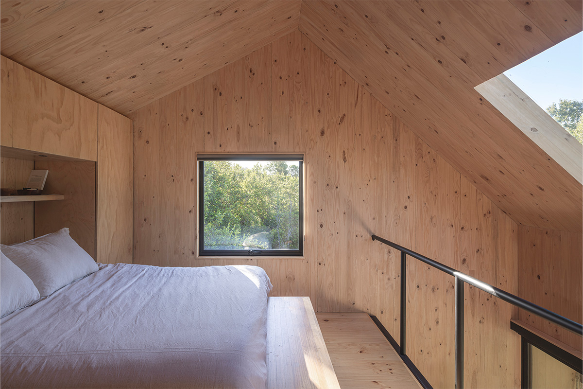 eficiente, dando espacio a la aislación térmica y otorgando soporte a un al revestimiento interior de madera. Este revestimiento se despliega en pisos, muros y cielos, generando una atmósfera cálida, envolvente y coherente en toda la vivienda.»
