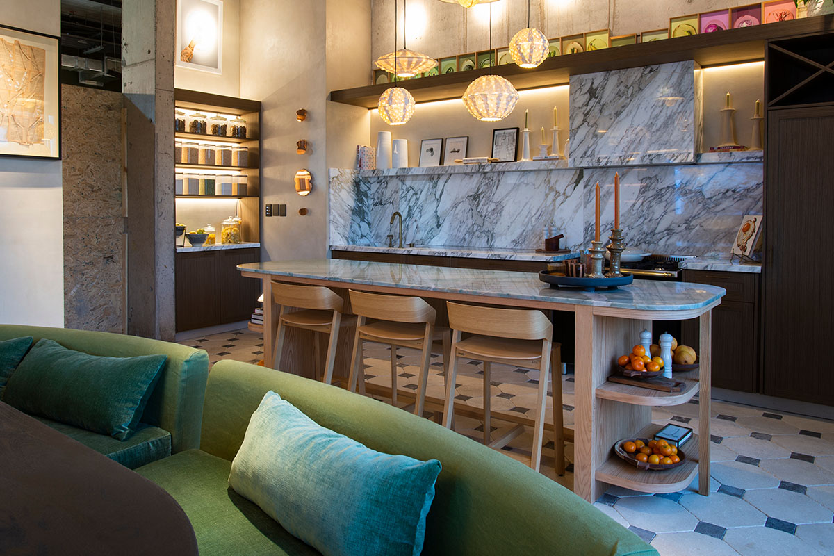 La interiorista Francisca Varela también fue reconocida con la medalla de plata a la Arquitectura y Diseño con su propuesta de Cocina y Estar. Su sello está presente en cada rincón: las lámparas colgantes, el mármol, las esquinas curvas, el cuidado uso de colores, y la especial atención con la que ilumina sus ambientes, lo que también le valió el premio a la mejor iluminación.