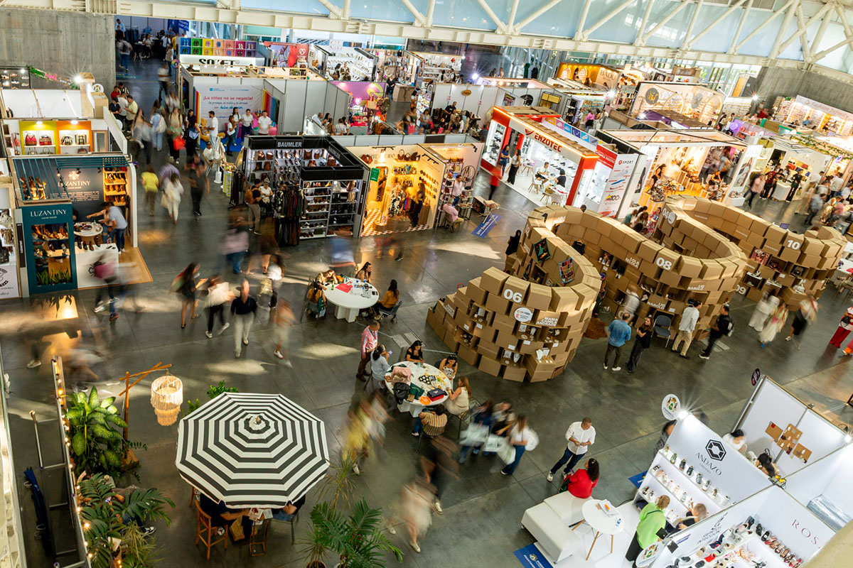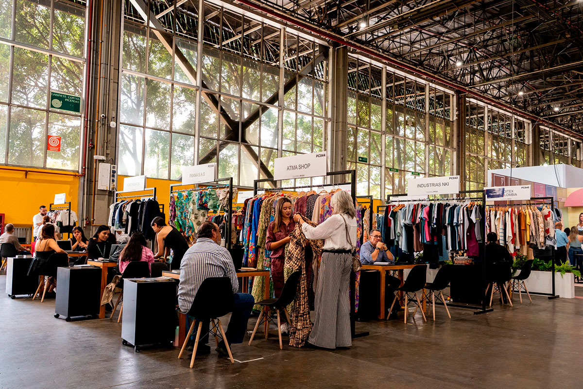 Los pabellones en Colombiamoda merecen un capítulo aparte. Hay uno de accesorios —carteras, joyas, zapatos—, otro dedicado a los trajes de baño y bikinis, otro especializado en denim, y uno más de insumos para la confección: desde botones y cierres hasta etiquetas y packaging. Incluso hay uno dedicado a la moda circular. El recorrido —la feria tiene una superficie total de 13.000 metros cuadrados— toma tiempo pero se disfruta.