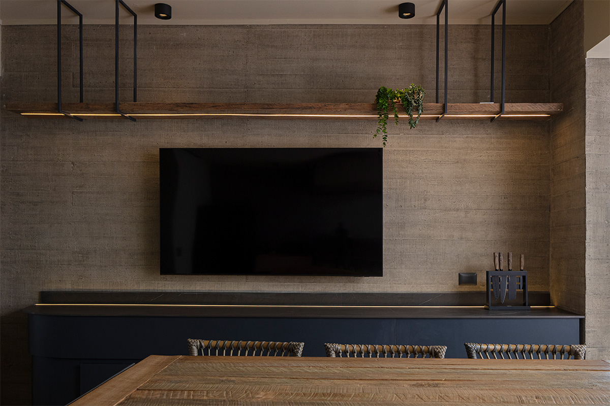 El trabajo no se limitó a la decoración. Renovare participó intensamente en la arquitectura, replanteando distribuciones, especificando acabados y terminaciones, diseñando todo el mobiliario fijo y coordinando instalaciones en obra. Desde barandas hasta detalles constructivos, cada elemento fue pensado como parte de una visión integral.