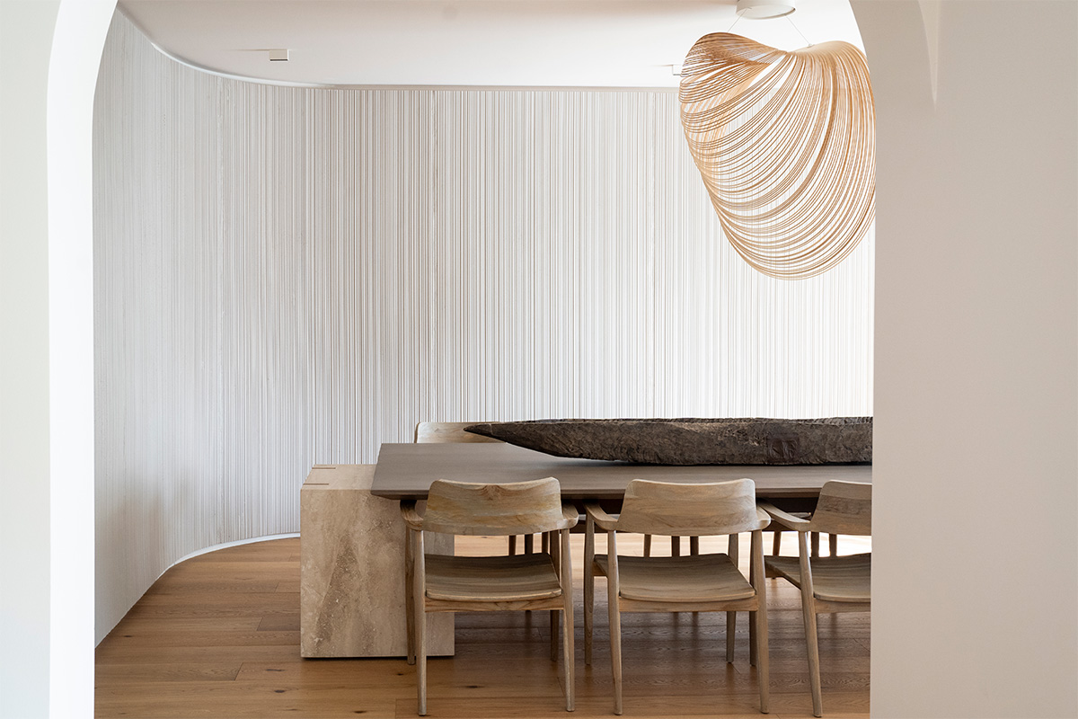 Lo que este encargo buscaba era crear una atmósfera que transmitiera calma y contemplación, como un templo contemporáneo. Y esa sensación se pudo construir gracias a los materiales nobles, luz tenue y una espacialidad ordenada, redefiniendo la forma de relacionarse con el espacio. «La intervención no solo reorganiza el programa, sino que propone un refugio interior donde cada rincón invita al silencio, la introspección y el bienestar, elevando el hogar a un lugar sagrado dentro de la vida cotidiana». afirma Vicky Cha.