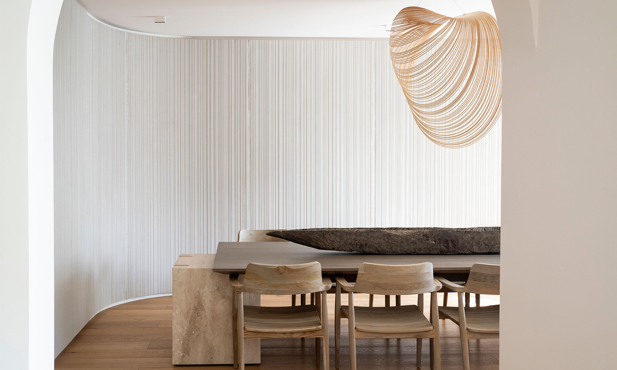 Lo que este encargo buscaba era crear una atmósfera que transmitiera calma y contemplación, como un templo contemporáneo. Y esa sensación se pudo construir gracias a los materiales nobles, luz tenue y una espacialidad ordenada, redefiniendo la forma de relacionarse con el espacio. «La intervención no solo reorganiza el programa, sino que propone un refugio interior donde cada rincón invita al silencio, la introspección y el bienestar, elevando el hogar a un lugar sagrado dentro de la vida cotidiana». afirma Vicky Cha.
