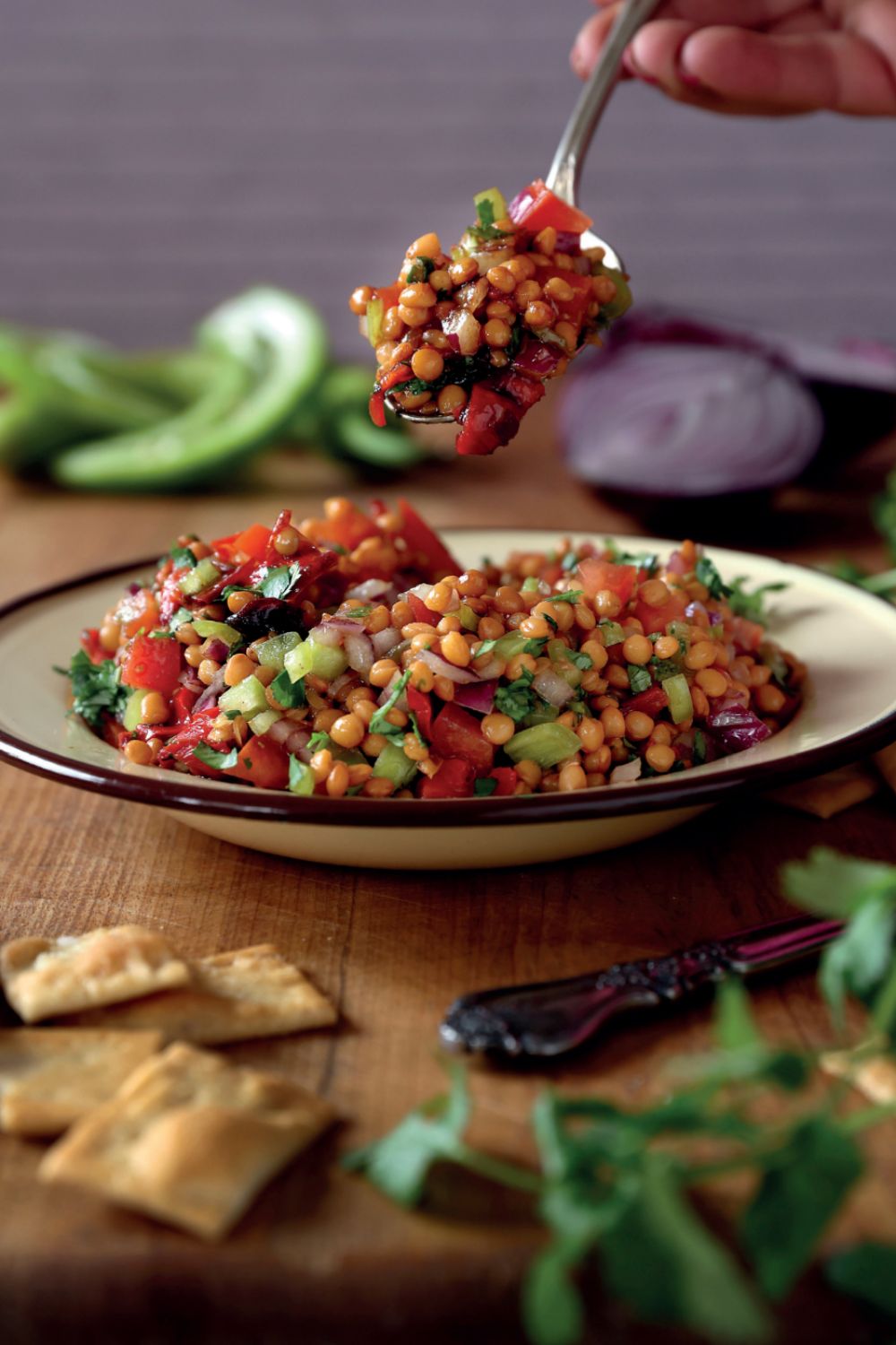 Para el montaje, partir con un triángulo de masa phillo, luego una lámina de foie, dos cucharadas de la mezcla de pato e higos, luego otro triángulo y repetir lo anterior. Terminar con el último triángulo y adornar con dos gajos de higo y granos de pimienta roja.