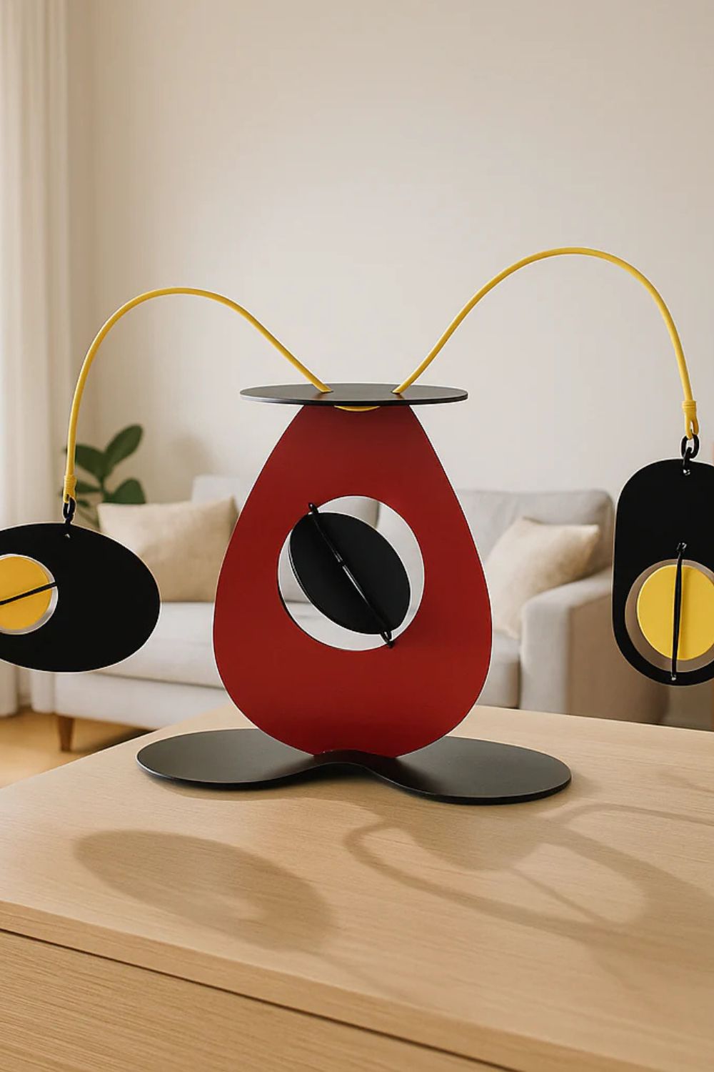Desde muy joven, Mauricio Russo Camhi fue cautivado por el arte del movimiento. A los 13 años, una exposición de Alexander Calder en el Museo de Bellas Artes marcó su futuro: se enamoró de los móviles y comenzó a fabricar los suyos, al principio por el placer de la contemplación, luego como obsequios para sus seres queridos. Este pasatiempo lo acompañó durante su exitosa carrera como ingeniero civil industrial, donde su mente estaba entrenada para los equilibrios, pesos y mediciones.
