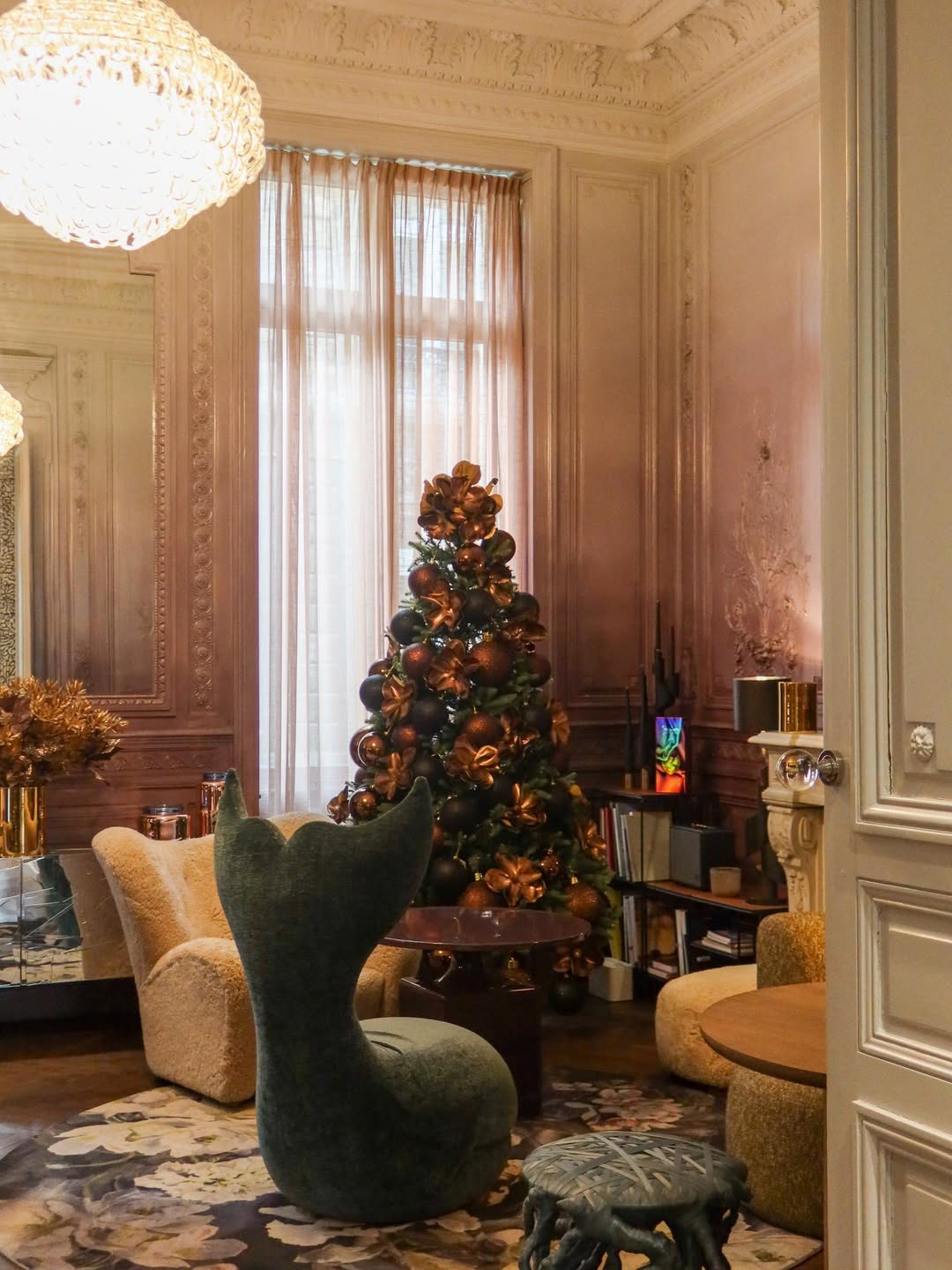Techos altos, molduras originales y una arquitectura clásica sirven de base a una cuidada selección de piezas de diseño contemporáneo, muebles icónicos y obras de arte que convierten cada espacio en una experiencia estética en sí misma. Nada es genérico: cada habitación es diferente y responde a una narrativa propia, pensada para ser habitada con calma.