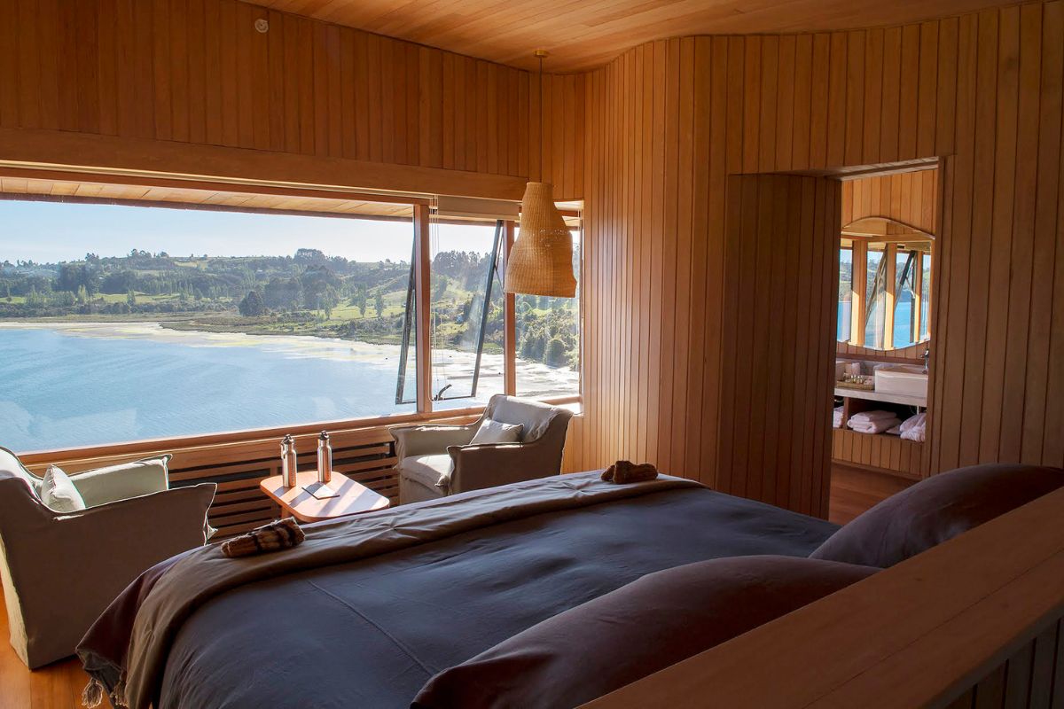 Inspirado en los tradicionales palafitos chilotes, Refugia Chiloé se emplaza frente a la Bahía de Pullao, con vistas abiertas al archipiélago. Sus 24 habitaciones —diseñadas para integrar el paisaje al interior— ofrecen una experiencia de descanso en un entorno que combina historia, gastronomía y cultura local.