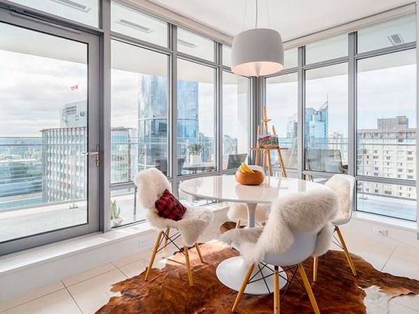 Un elegante y minimalista departamento con vistas a la bella ciudad de Vancouver.