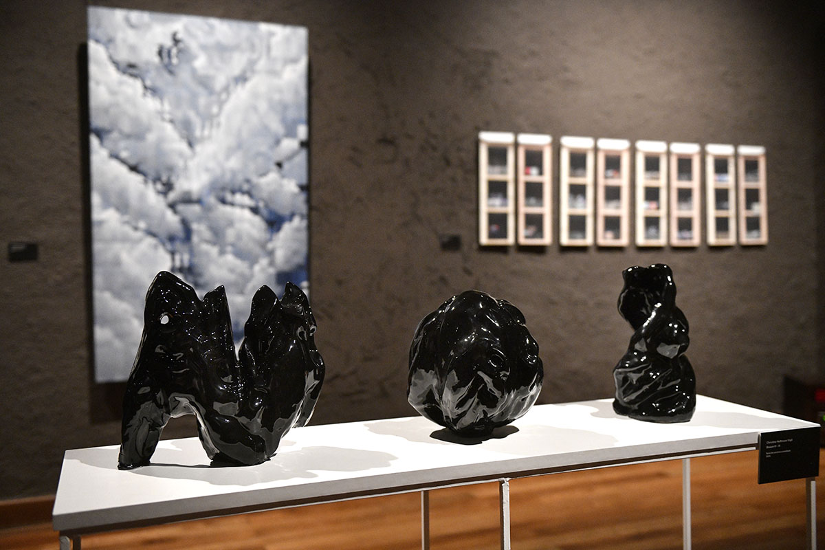 La exhibición presenta una notable diversidad material y conceptual, con trabajos que exploran desde lo íntimo y autobiográfico hasta lo social y colectivo, utilizando técnicas como grabado, instalación, cerámica, fotografía análoga, bordado y pintura al óleo.