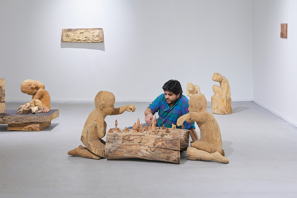 Jardines humanos toma la imagen del jardín como alegoría de la sociedad: un lugar donde conviven universos y sensibilidades diversas en un mismo espacio. Desde ese “estar en el jardín”, Hidalgo propone abrir cercos, diversificar especies, recuperar perspectivas y replantar lo caído para que vuelva a florecer en estructuras simbólicas que miran hacia el futuro. Y como parte de esa idea de “belleza de los procesos”, durante los fines de semana de la exposición el artista trabajará in situ una escultura a partir de un tronco de gran formato (2 m de largo por 80 cm de diámetro), ofreciendo una oportunidad poco común para observar y conversar con la obra en pleno devenir.